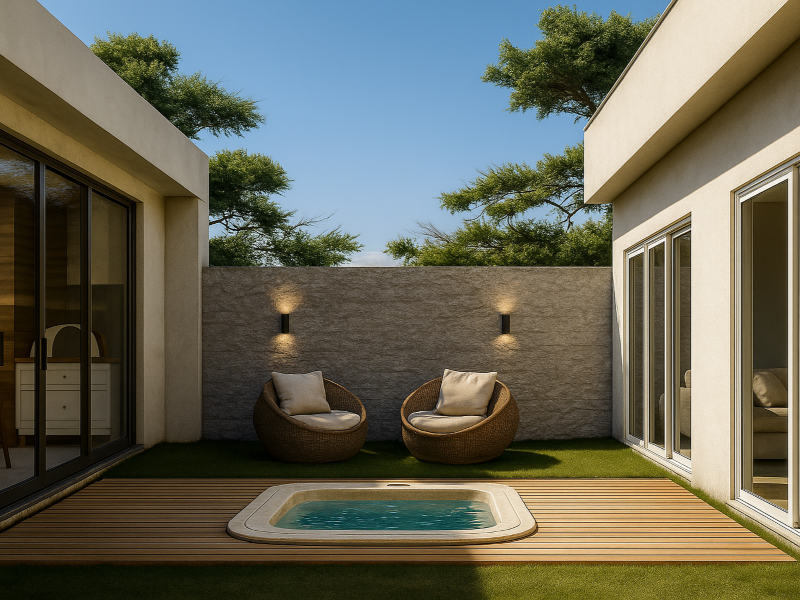 Nesta obra em itobi -SP fizemos uma ampliação em um projeto nosso , o cliente aproveitou um terreno que estava à venda ao lado de sua construção . Vimos nele a oportunidade de aumentar a tão sonhada área de lazer , colocando também uma área de spa .